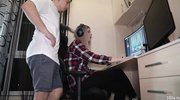 Пока лучшая подруга не видит, блондинка в короткой юбке запрыгивает на её парня и начинает дико скакать на его болте. Она мастурбирует, лаская клитор, пока член пронзает её киску при каждом падении вниз. Сцена наполнена грязными разговорами о предательстве и запредельной похотью. Девица активно работает тазом, насаживаясь на агрегат до самых гланд. Пацан дрючит изменщицу в бешеном темпе, всаживая ствол до упора и чувствуя, как её узкая щелочка судорожно сжимает его плоть в предчувствии мощного финала.